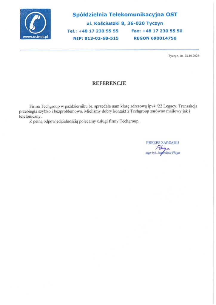 Otrzymaliśmy liczne referencje od naszych klientów. Oto niektóre z nich: