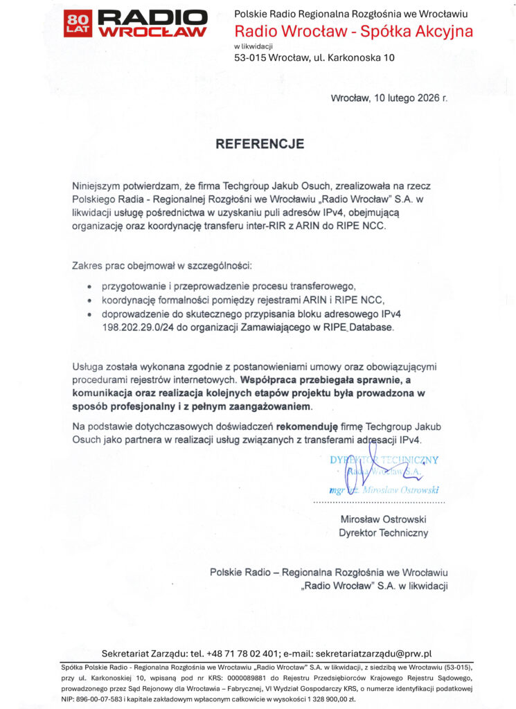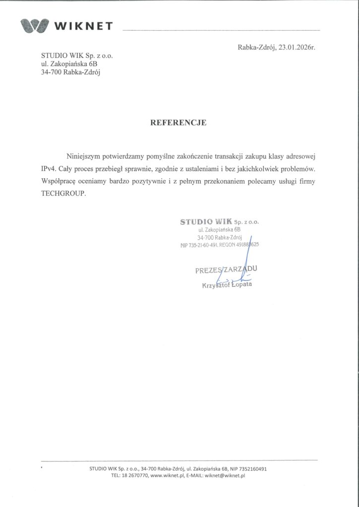 Oferta na sprzedaż adresów ipv4